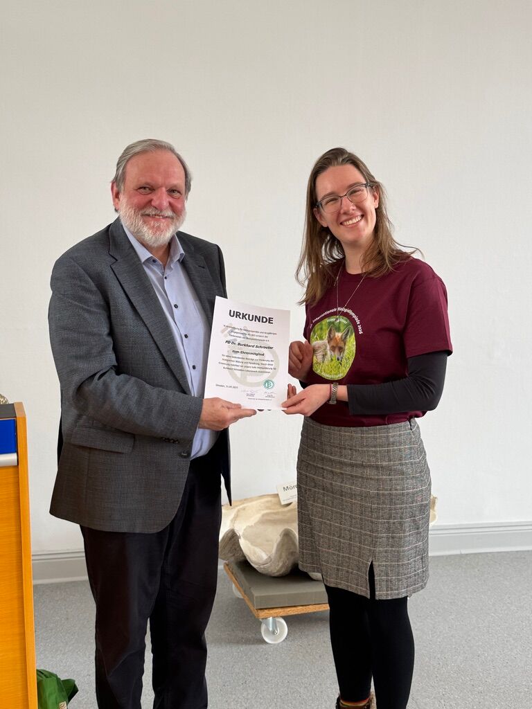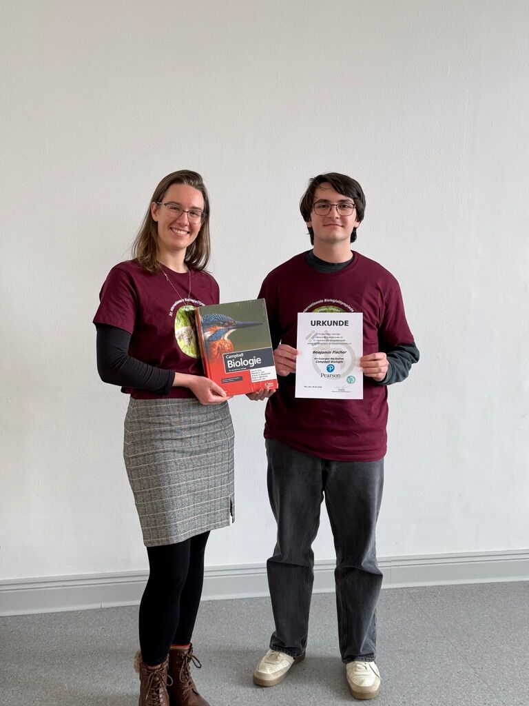 Als Sachbuchpreis erhielt Benjamin Fischer, der bestplatzierte Teilnehmende, der knapp den Einzug in die vierte Runde verpasste und im kommenden Jahr erneut antreten kann, ein Exemplar von Campbell – Biologie, gesponsert vom Pearson-Verlag. Mit diesem Standardwerk ist er bestens gerüstet für die Auswahlrunden zur IBO 2027. Ein besonderer Moment war zudem die Verleihung der Ehrenmitgliedschaft des Fördervereins an Burkhard Schroeter, den ehemaligen Wettbewerbsleiter der IBO, für sein langjähriges und prägendes Engagement.