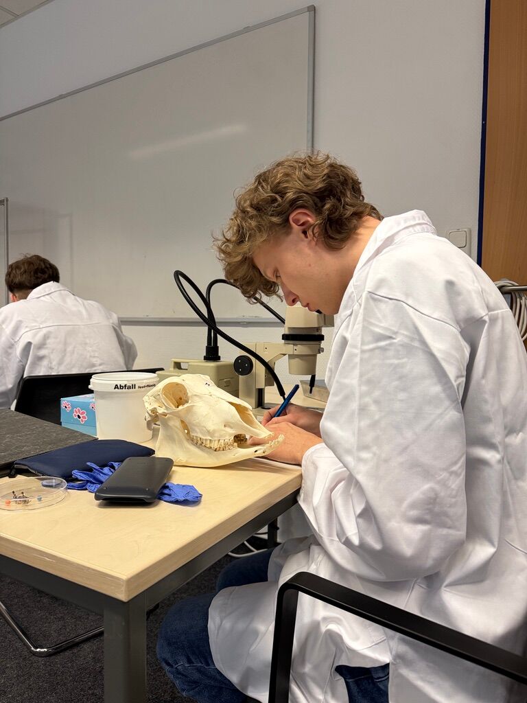 Nach einem kurzen Durchatmen am Dienstagabend stand am Mittwoch die Theorieklausur auf dem Programm: Zehn umfangreiche Komplexaufgaben sowie 80 Kurzaufgaben aus nahezu allen Teilgebieten der Biologie verlangten den Teilnehmenden noch einmal alles ab – zum Beispiel in Genetik, Evolution, Systematik, Verhaltensbiologie oder Tierphysiologie
