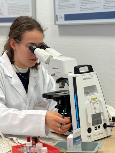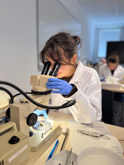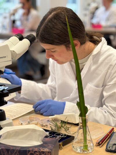 Nach einem ersten Kennenlernen am Sonntagabend startete die Woche am Montagmorgen mit intensiven Crashkursen und Seminaren. Hier wurde nicht nur theoretisches Wissen aufgefrischt, sondern vor allem praktisch gearbeitet: Der sichere Umgang mit Mikropipetten und dem Mikroskop wurde trainiert, ein Wurm diente als Studienobjekt für Bestimmungsübungen, und in einem Bioinformatik-Workshop tauchten die Teilnehmenden in Sequenzanalysen und Datenbanken ein. Schnell wurde klar: Diese Woche würde nicht nur Wissen abprüfen, sondern auch neue Kompetenzen vermitteln.